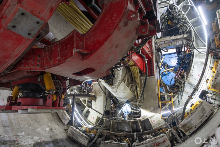 2025年6月30日,上海地铁13号线季乐路站施工现场,搭载智能决策“大脑”的数智盾构在车站接收井成功完成接收。