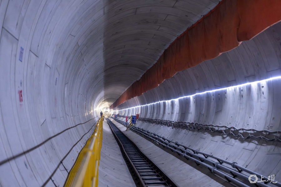 施工中共完成389环/2334块承插式接头管片拼装,实际定位误差≤2毫米,盾构机姿态均控制在±25毫米范围内,成型隧道轴线和椭圆度满足设计要求,全线无渗漏。